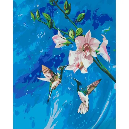 Картина за номерами Strateg Рожеві калібрі з лаком розміром 40х50 см (GS1088)