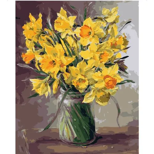 Картина за номерами Strateg Дачний букет жовтих нарцисів з лаком розміром 40х50 см VA-1206