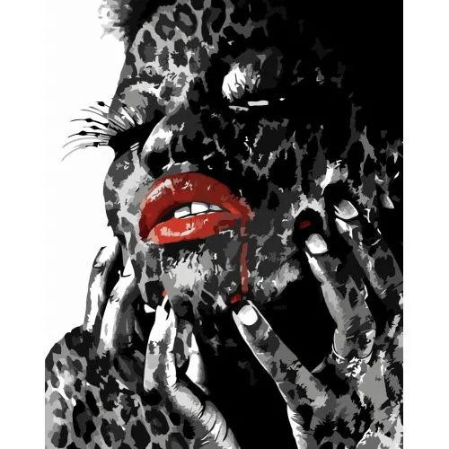 Картина за номерами Strateg Леопардова дівчина з лаком розміром 40х50 см VA-3425
