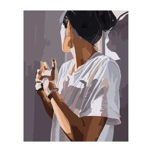 Картина за номерами Strateg Стильна дівчина 2 з лаком розміром 40х50 см VA-0738