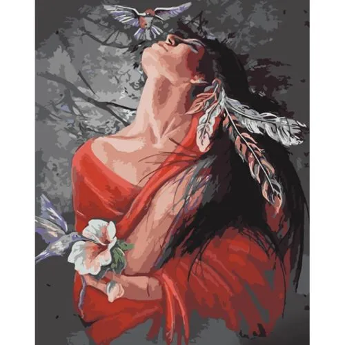 Картина за номерами Strateg Дівчина з птахами з лаком розміром 40х50 см (GS1089)