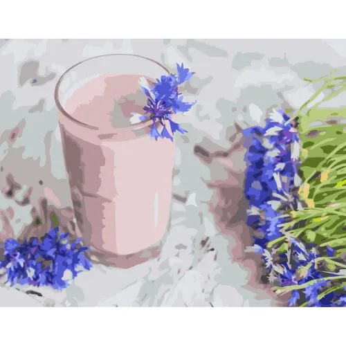 Картина за номерами Strateg Кефір з волошками з лаком розміром 40х50 см (SY6761)