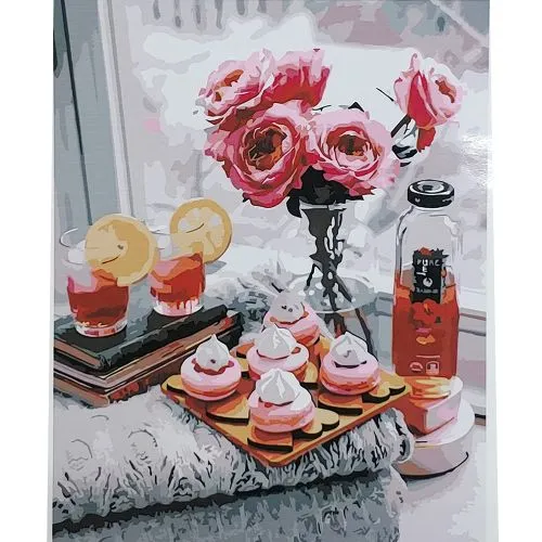 Картина за номерами Strateg Ранкові солодщі до кави з лаком розміром 40х50 см SY6422