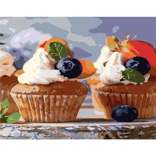 Картина за номерами Strateg Кекси з чорницею з лаком розміром 40х50 см SY6166