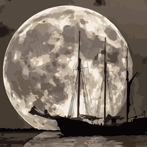Картина за номерами Strateg Корабель на фоні місяця розміром 40х40 см (SK008)