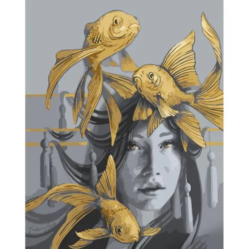 Картина за номерами Strateg Золоті рибки з лаком розміром 40х50 см (GS1253)