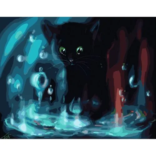 Картина за номерами Strateg Чорне кошеня розміром 40х50 см (GS372)