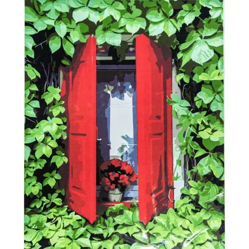 Картина за номерами Strateg Червоні віконниці з лаком розміром 40х50 см VA-3382