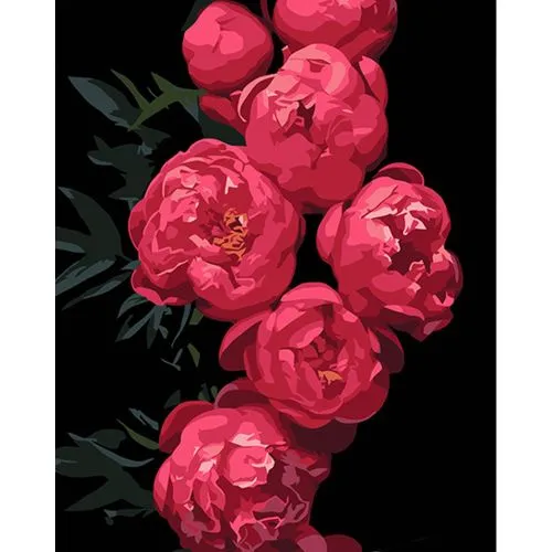 Картина за номерами Strateg Рожеві півонії на чорному фоні розміром 40х50 см (AH1035)