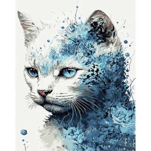 Картина за номерами Strateg Блакитний котик з лаком та з рівнем розміром 40х50 см (GS1534)