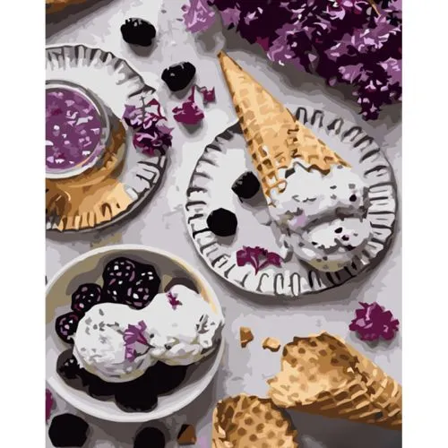 Картина за номерами Strateg Морозиво та ожина з лаком розміром 40х50 см (GS1244)