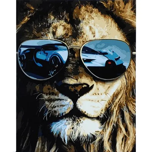 Картина за номерами Strateg Лев гонщик з лаком розміром 40х50 см (SY6775)
