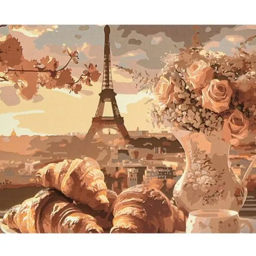 Картина за номерами Strateg Чарівний ранок у Парижі з лаком та рівнем розміром 40х50 см (VA-4616)