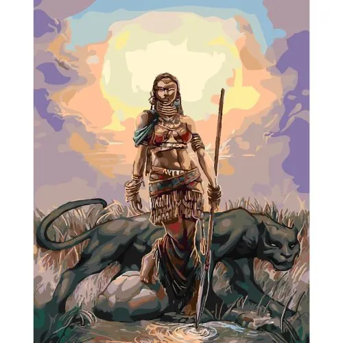 Картина за номерами Strateg Мисливиця з пантерою з лаком розміром 40х50 см SY6106