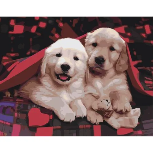 Картина за номерами Strateg Пара цуценят з лаком розміром 40х50 см SY6529