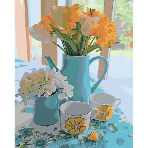 Картина за номерами Strateg Квітковий ранок з лаком розміром 40х50 см SY6431