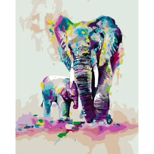 Картина за номерами Strateg Слоненя з мамою з лаком розміром 40х50 см VA-1039