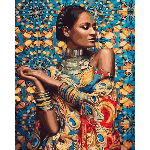 Картина за номерами Strateg Дівчина Індії на кольоровому фоні розміром 40х50 см (VA-2773)
