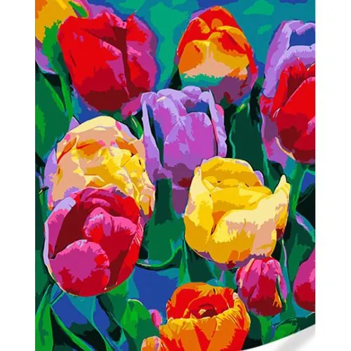 Картина за номерами Strateg Тюльпаны поп-арт з лаком та з рівнем розміром 40х50 (GS1625)