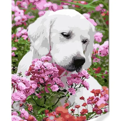 Картина за номерами Strateg Песик з м'якими сердечками розміром 50х25 см (WW234)