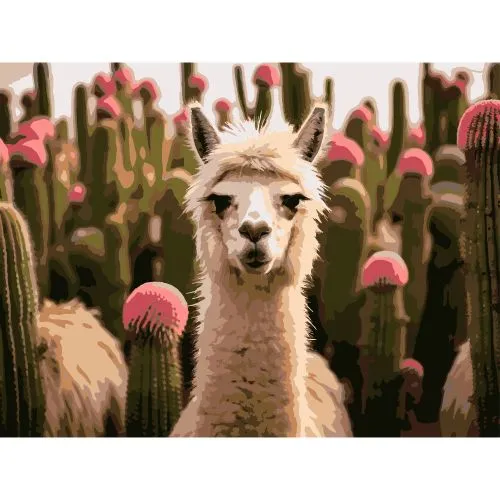 Картина за номерами Strateg Альпака серед квітів 30Х40 (SS-1265)