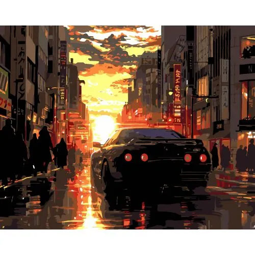 Картина за номерами Strateg ПРЕМІУМ Авто на заході на чорному фоні розміром 40х50 см (AH1178-17)