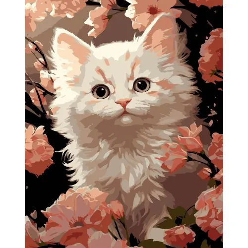 Картина за номерами Strateg ПРЕМІУМ Біле кошеня на чорному фоні розміром 40х50 см (AH1229-17)