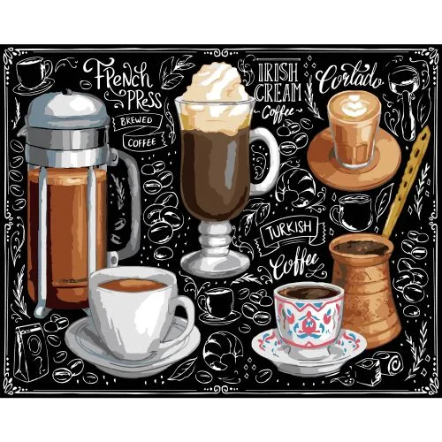 Картина за номерами Strateg ПРЕМІУМ Світ кави на чорному фоні розміром 40х50 см (AH1173-19)
