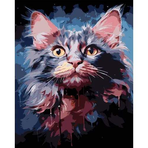 Картина за номерами Strateg ПРЕМІУМ Акварельий кіт на чорному фоні розміром 40х50 см (AH1199-17)