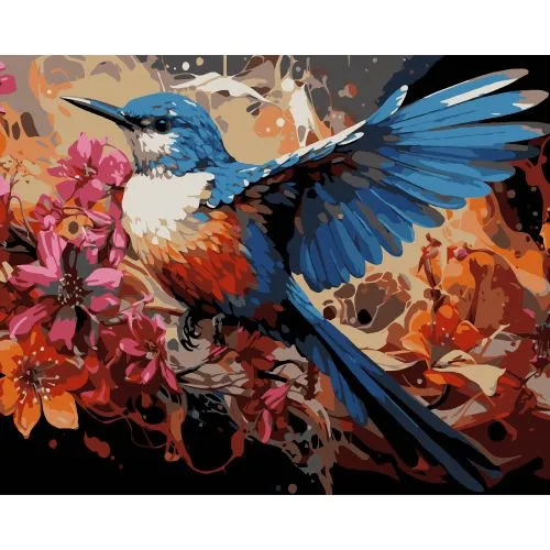 Картина за номерами Strateg ПРЕМІУМ Маленька пташка на чорному фоні розміром 40х50 см (AH1202-17)