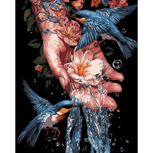 Картина за номерами Strateg ПРЕМІУМ Сині птахи на чорному фоні розміром 40х50 см (AH1204-17)