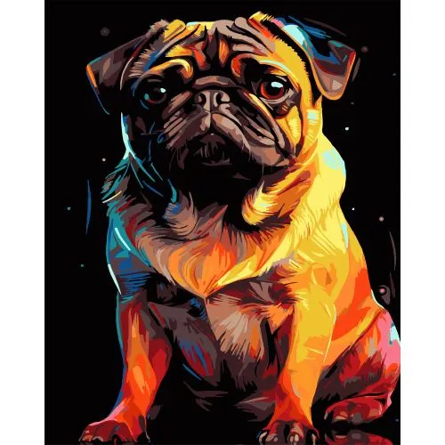 Картина за номерами Strateg ПРЕМІУМ Яскравий мопс на чорному фоні розміром 40х50 см (AH1223-19)