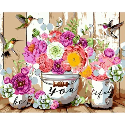 Картина за номерами Strateg Чотири букети на кольоровому фоні розміром 40х50 см (MZ067)