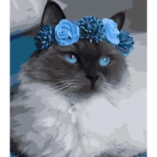 Картина за номерами Strateg Котик у блакитному віночку на кольоровому фоні розміром 40х50 см (MZ002)