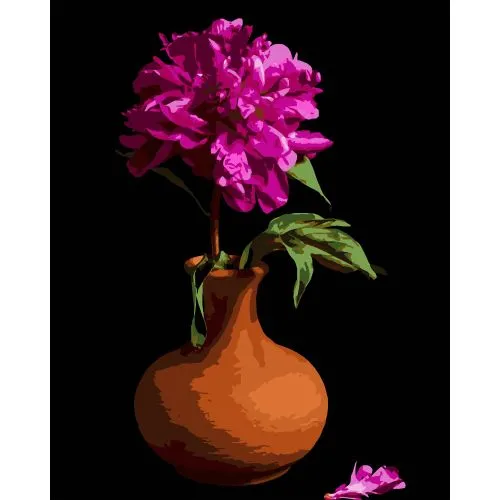 Картина за номерами Strateg ПРЕМІУМ Півонія в вазі на чорному фоні розміром 40х50 см (AH1188-17)