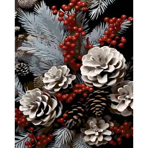 Картина за номерами Strateg ПРЕМІУМ Зимова композиція на чорному фоні розміром 40х50 см (AH1235)