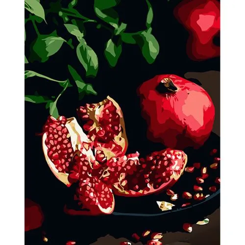 Картина за номерами Strateg Гранат на тарілці на чорному фоні розміром 40х50 см (AH1010)