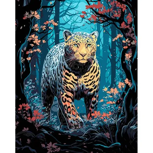Картина за номерами Strateg Леопард на полюванні на чорному фоні розміром 40х50 см (AH1062)
