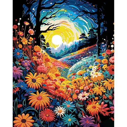 Картина за номерами Strateg Нічний квітковий ліс на чорному фоні розміром 40х50 см (AH1082)