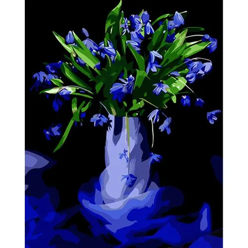 Картина за номерами Strateg Сині проліски на чорному фоні розміром 40х50 см (AH1005)