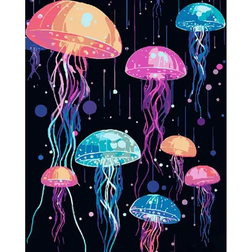Картина за номерами Strateg Яскраві медузи на чорному фоні розміром 40х50 см (AH1076)