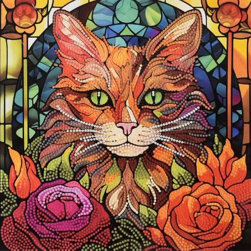 Алмазна мозаїка Strateg ПРЕМІУМ Кіт серед квітів на паперовій основі розміром 18х18 см (ZAV1818-12)