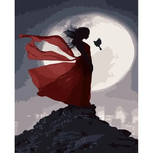 Картина за номерами Strateg Червона сукня на тлі місяця з лаком розміром 40х50 см VA-3178