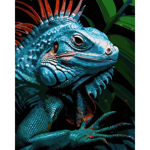 Картина за номерами Strateg ПРЕМІУМ Яскравий хамелеон на чорному фоні розміром 40х50 см (AH1195-15)