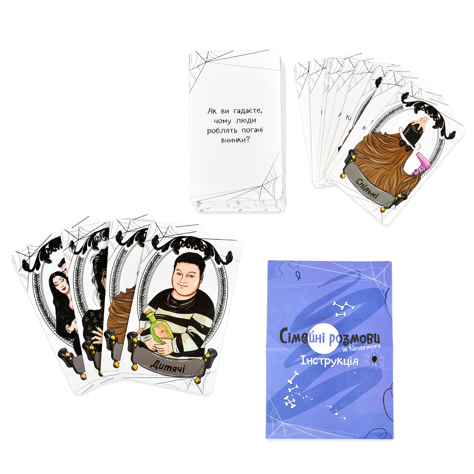“Сімейні розмови” — настільна гра, яка зближує родину, допомагає краще зрозуміти одне одного та весело провести час разом. У комплекті картки, розділені на три категорії: