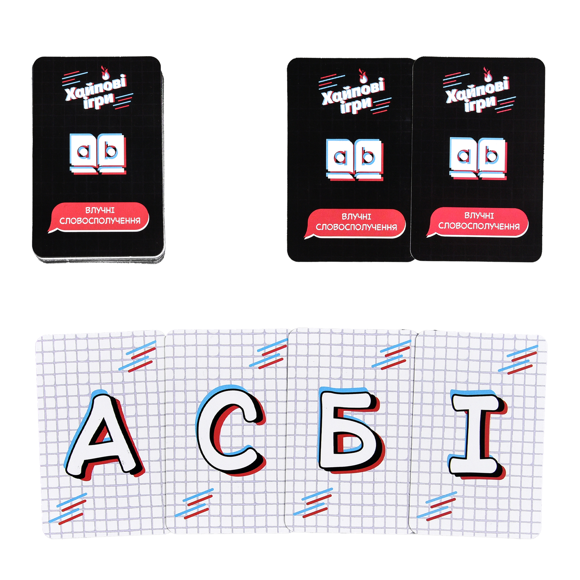 №3. «Влучні словосполучення» — динамічна гра на швидкість і креативність. Гравці складають сталі словосполучення з двох випадкових літер. Хто першим назве правильне — забирає картку та стає ближче до перемоги.