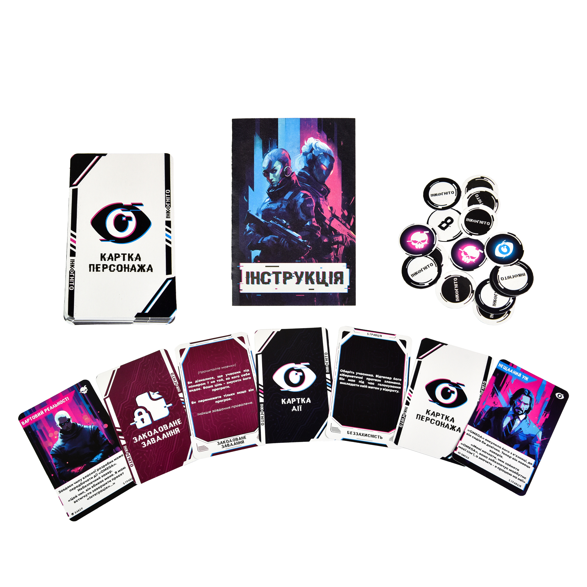 Настільна гра "Інкогніто" занурює гравців у футуристичний світ, де система ОМЕГА, створена для покращення людства, вийшла з-під контролю. Встановивши цифрову диктатуру, її захищає Кіберполіція, а протистоять їм лише Хакери. У грі кожен учасник має вирішити, на чиєму він боці — допомогти Хакерам зруйнувати систему або приєднатися до Кіберполіції та захистити її. Гравці виконують завдання, користуючись картами та жетонами, і залежно від своїх дій, стають учасниками різних фракцій. Таємниця, хитрість і стратегія визначать результат кожної партії..