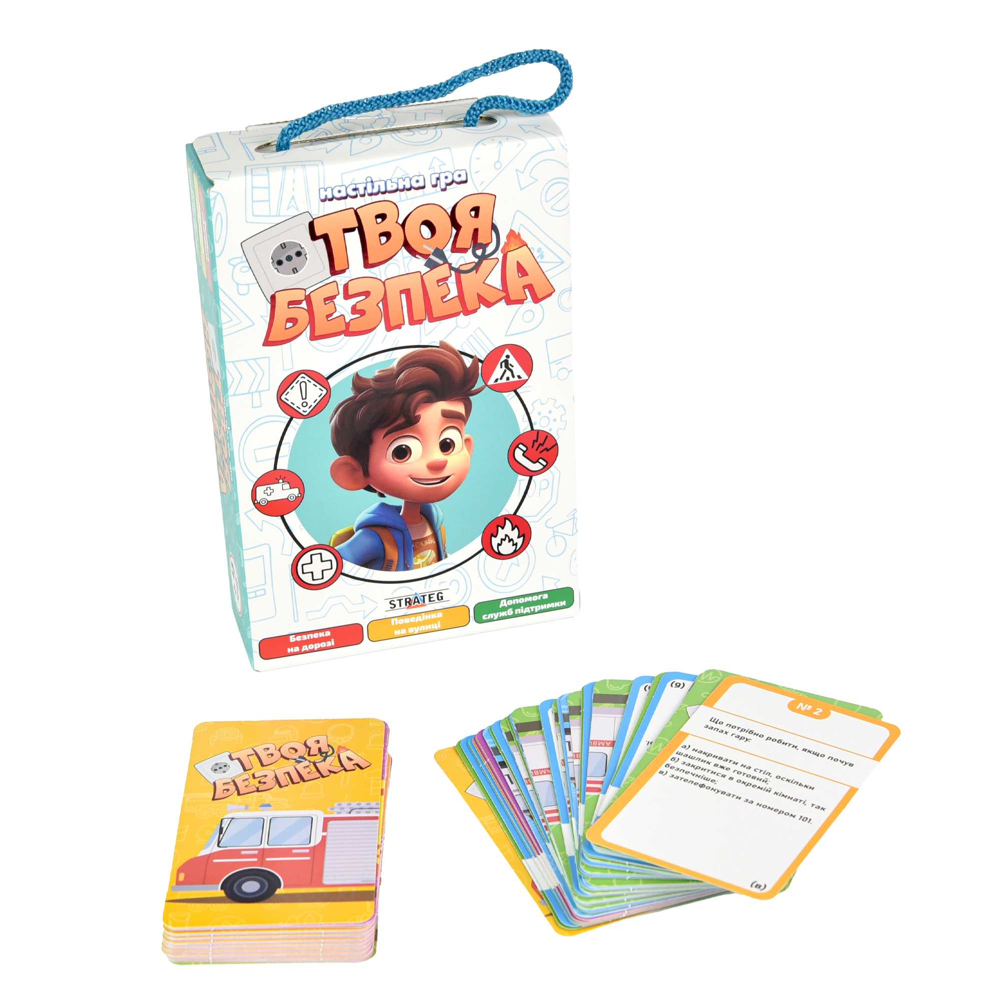 Настільна гра “Твоя безпека” познайомить дітей із можливими небезпечними ситуаціями та навчить їх правильної поведінки у таких ситуаціях. У грі є 4 типи карток з питаннями, які відповідають певному типу небезпеки: пожежа, хвороби, аварії чи злочини. Діти засвоять правила дорожнього руху, поводження з електроприладами та як діяти під час пожежі. А також як поводити себе з незнайомцями та як попіклуватися про своє здоров’я. Навчатися набагато легше, якщо матеріал подавати у формі гри. І з цим чудово справляється гра “Твоя безпека” від “Strateg”. З нею ваші діти будуть у цілковитій безпеці!
