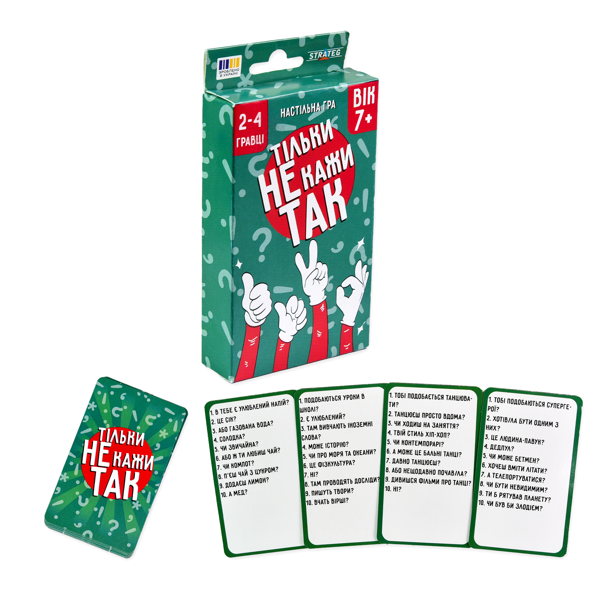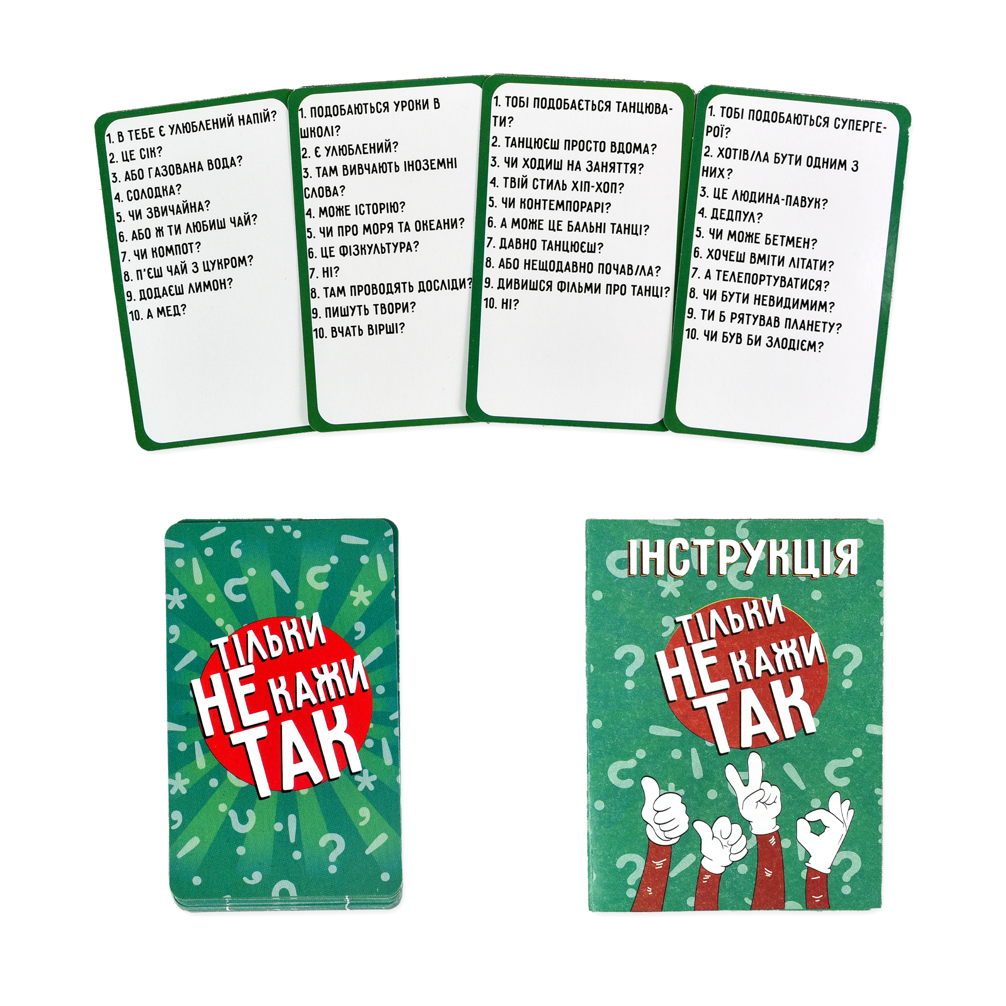 "Тільки не кажи Так" — весела гра, у якій слова "Так" і "Ні" заборонені! Тягніть картку і швидко відповідайте на прості питання, оминайте "так" і "ні" та ставайте переможцем. Проявіть кмітливість й увесь словниковий запас, аби ввести суперників в оману!