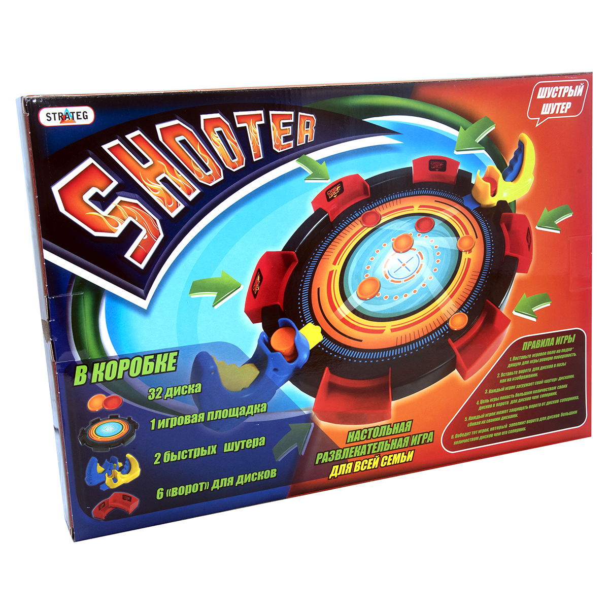 «Shooter» (Strateg 8000) - це захоплююча настільна гра для найвправніших і найвлучніших стрільців. У комплекті ігрове поле, ворота, фішки та важелі. Зібрати конструкцію нескладно: прикріпіть до ігрового поля ворота та важелі для запуску фішок, помістіть диски в важелі та приготуйтеся провести незабутній вечір.